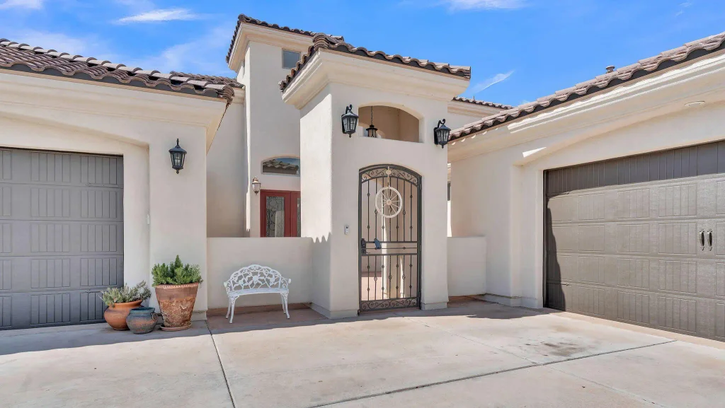 This stunning two story custom home sits in .34 acre lot in the heart of South Valley. Offering 3171 sqft, 4 Bedrooms 3.5 bathrooms, sun room, finished 4 car garage, with a private front courtyard. Welcoming with a 23' entry tower and 18' ceilings living room with cozy gas fireplace, & 10' ceilings kitchen with custom cabinets with granite counters. Enjoy new outdoor kitchen in a courtyard patio, back yard access to walking acequia trail.