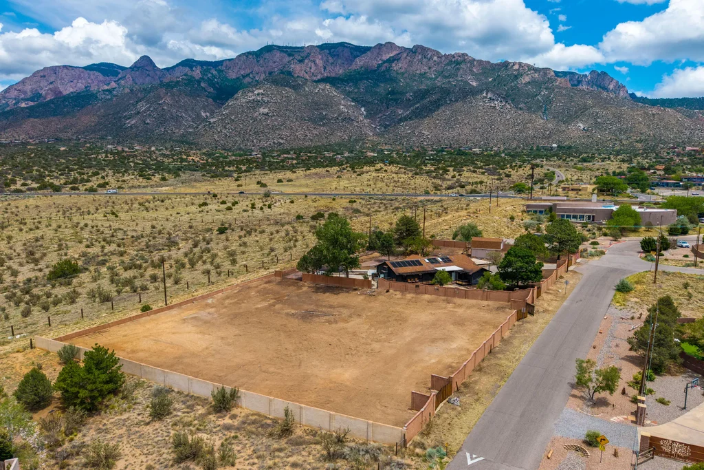 Rare opportunity on the North side of prestigious Elena Drive! These two already-subdivided lots, each .78 acres, total 1.56 acres and back directly to the Sandia Pueblo buffalo preserve, offering exceptional privacy and unobstructed views of the Sandia Mountains and Albuquerque city lights. One lot features an updated log home with 4 bedrooms, 3 baths, an open kitchen, and a spacious living area with a cozy fireplace--making conventional financing a breeze. The home has also been successfully used as a short-term rental, offering strong income potential. Live in the existing home while building your dream estate on the adjacent lot, or create a luxurious compound in one of North Albuquerque Acres' most coveted locations.