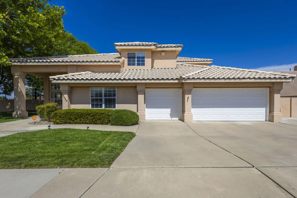 Welcome to this meticulously maintained 4,065 sq ft custom built Mechenbier home, where quality craftsmanship meets ultimate outdoor living. Located in one of Albuquerque, NM, this 4 bedroom, 3 bathroom home offers spacious elegance & thoughtful design.Step outside into a private backyard paradise, lush green grass sets the stage for endless fun with a full-size pickleball & basketball court, a built-in trampoline, and a charming playground set. Whether entertaining or enjoying quiet family evenings, this outdoor space is truly unmatched.Inside, the home features generous living areas, abundant natural light, & timeless finishes that reflect Mechenbier's signature style. Pride of ownership is evident in every detail, making this a rare opportunity to own a move-in ready rarity.