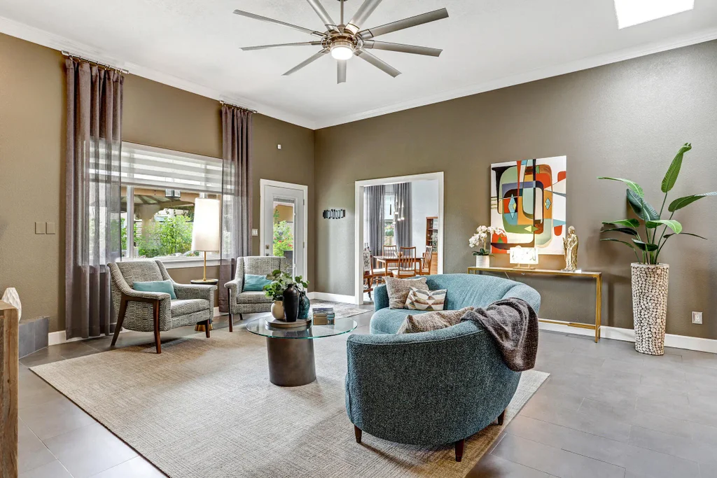 Located in The Meadows on Rio Grande within the highly sought after Thomas Village neighborhood, this four-bedroom home is a true gem offering elegance, style and an abundance of storage with multiple walk-in closets throughout. As you enter this well designed home, a bright entryway with abundant natural light greets you and leads you to all the best this beautiful home offers. A comfortable dining room overlooking the meticulously maintained front courtyard; a spacious living room with high ceilings and cozy gas fireplace overlooking the lush backyard; easy access to the covered porch and stone patio with pergola for added outdoor living and entertaining spaces.