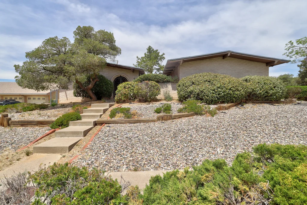 This charming mid-century ranch sits on a spacious corner lot and is ready for your personal touch! Original built-ins, wrought iron decorative accents, wood beams and avocado kitchen that add timeless character. This home offers the prefect blend of vintage charm and opportunity for your modern updates. Two living areas with vaulted ceilings, one with a fireplace that opens to the backyard with a covered patio and a pool to enjoy on those hot summer days. The primary suite has a walk in closet and a large bathroom to reimagine into your dream bath. There are mountain views and back yard access all on .28 of an acre. The two car garage and driveway face Hiawatha. This part of Constitution is East of Juan Tabo and is considered a residential street. All appliances convey.